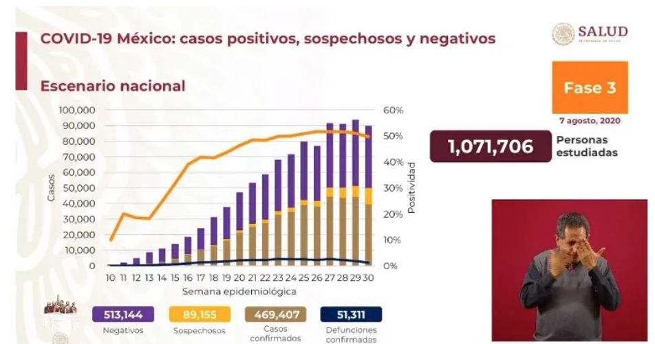 CDMX, 07 de agosto del 2020.- La Secretaría de Salud informó este viernes que en el país se registra 51,311 muertes por el nuevo coronavirus, 794 más que las reportadas un día antes.