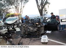 Morelia, Mich., 25 de marzo del 2012 (Agencia Esquema).- Alrededor de las 17:50 horas de este domingo, tuvo lugar un impresionante accidente en la carretera Morelia – Pátzcuaro a la altura del kilometro 15+500 al impactarse de frente una camioneta Nissan Xtrail color blanca con placas de circulación PFL-1012 de esta Entidad Federativa, en la que viajaba un matrimonio acompañados de su hija, contra un Nissan Sentra color negro con placas PFK-9627 también de este Estado llevando a bordo a tres tripulantes .