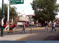 MORELIA, Mich.- 31 de Marzo.- Agencia ESQUEMA.-Moradores de la Casa del Estudiante 2 de Octubre agredieron a pedradas y cubetadas de pintura a elementos del Grupo de Operaciones Especiales (Goe) y de la Policía Territorial y de Caminos, quienes se acercaron a ellos cuando mantenían un bloqueo en la zona de la plaza Carrillo en protesta para que no les aplicaran el examen del Centro Nacional de Evaluación (Ceneval).