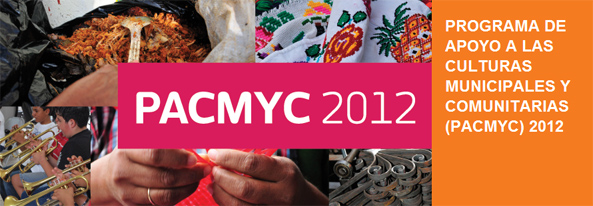 La Dirección Generalde Culturas Populares del Conaculta y las secretarías, institutos, consejos o direcciones de Cultura de los Gobiernos Estatales y del Distrito Federal, Convocan a grupos interesados en participar en el Programa de Apoyo a las Culturas Municipales y Comunitarias (PACMyC) 2012, para recibir apoyo económico y desarrollar un proyecto cultural que fortalezca la identidad y procesos culturales de sus comunidades, en los espacios geográficos y simbólicos donde se desarrollan.