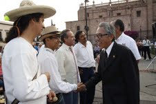 Morelia, Mich., 9 mayo de 2012.- Con el propósito difundir los valores que caracterizan a la Universidad Michoacana de San Nicolás de Hidalgo, además de establecer puentes de colaboración con grupos organizados de la sociedad civil, el rector Salvador Jara Guerrero puso en marcha el programa “Gira por la paz”, organizado por la Secretaría de Difusión Cultural y Extensión Universitaria.