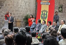Morelia, Mich., 22 de mayo de 2012.- El concejero presidente municipal Manuel Nocetti Tiznado presidió el acto cívico por el CXCI Aniversario de la Promulgación de la Independencia en Valladolid de Michoacán, hecho histórico realizado por el vallisoletano Agustín de Iturbide un día como hoy pero de 1821, al entrar en la ciudad mediante el acuerdo y el consenso generales, sin provocar pérdidas humanas, como indicó Jaime Reyes Monroy, director del Museo y Archivo Casa Morelos, así como orador oficial del evento.