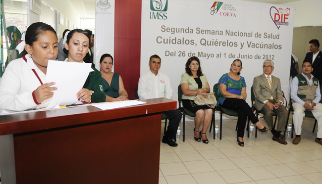 Villamar, Mich., 28 de mayo del 2012.- Las semanas de vacunación son una estrategia de prevención ante el embate de discapacidades como la poliomielitis, en las que el sector salud incidió para disminuir los efectos; además de que logró la conformación de muros de contención para evitar otras enfermedades como la desnutrición en la población infantil, explicó el delegado estatal del IMSS Julio Cesar González Jiménez en el arranque de la Segunda Semana Nacional de Vacunación, en el hospital Rural del IMSS Oportunidades, ante la presencia del secretario de Salud en Michoacán, Rafael Díaz Rodríguez, el delegado en Michoacán del Instituto de Seguridad y Servicios Sociales de los Trabajadores del Estado (ISSSTE), Francisco Carrillo Díaz Barriga, de la directora del DIF estatal, Nelly Sastre Gasca y autoridades municipales se dió inicio formal a las actividades que incluyen 974 mil acciones a favor de la salud de la infancia en el estado.
