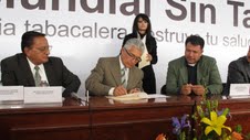 Morelia, Mich., a 31 de mayo de 2012.- En el marco del Día Mundial sin Tabaco, Rafael Díaz Rodríguez, secretario de Salud del estado (SSM) y Roberto Molina Garduño, presidente de la Asociación de Hoteles en Michoacán, firmaron el convenio de acciones, para establecer las bases para la Campaña permanente de fomento y promoción para edificios libres de humo de tabaco.