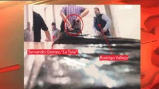 México, D.F., 15 de abril del 2015.- El periodista Carlos Loret de Mola, presentó un video así como diversas fotografías de Rodrigo Vallejo Mora, hijo del ex gobernador de Michoacán Fausto Vallejo, en reunió con Servando Gómez «La Tuta», líder de Los Caballeros Templarios.