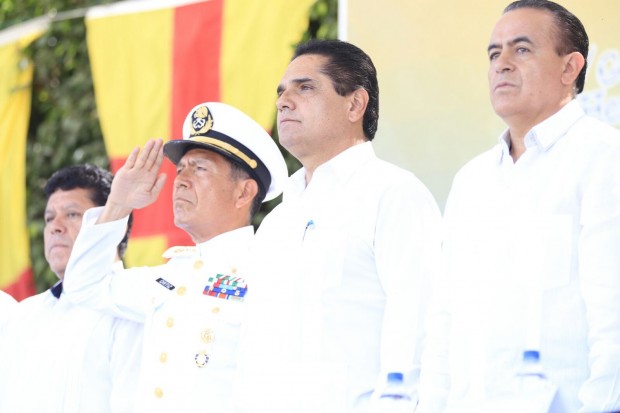 Durante el acto cívico que tuvo lugar en la 10ª Zona Naval Militar de este puerto michoacano, Aureoles Conejo llamó a la construcción de un frente común que inhiba a quienes vulneran la paz pública.