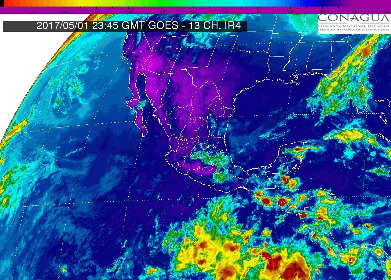CDMX, 03 de mayo del 2017.- Durante este día miércoles, el nuevo sistema frontal No.45 ingresará y se extenderá sobre el norte y noreste de México, interaccionará con una zona de inestabilidad en el oriente del país, ocasionando lluvias y vientos fuertes con posibles tolvaneras en dichas regiones, así como en estados del occidente, Mesa Central y Mesa del Norte. No obstante, una circulación anticiclónica mantendrá el ambiente caluroso a muy caluroso en gran parte del país, además viento del sur y sureste, con rachas superiores a 60 km/h en el litoral del Golfo de México y Península de Yucatán.