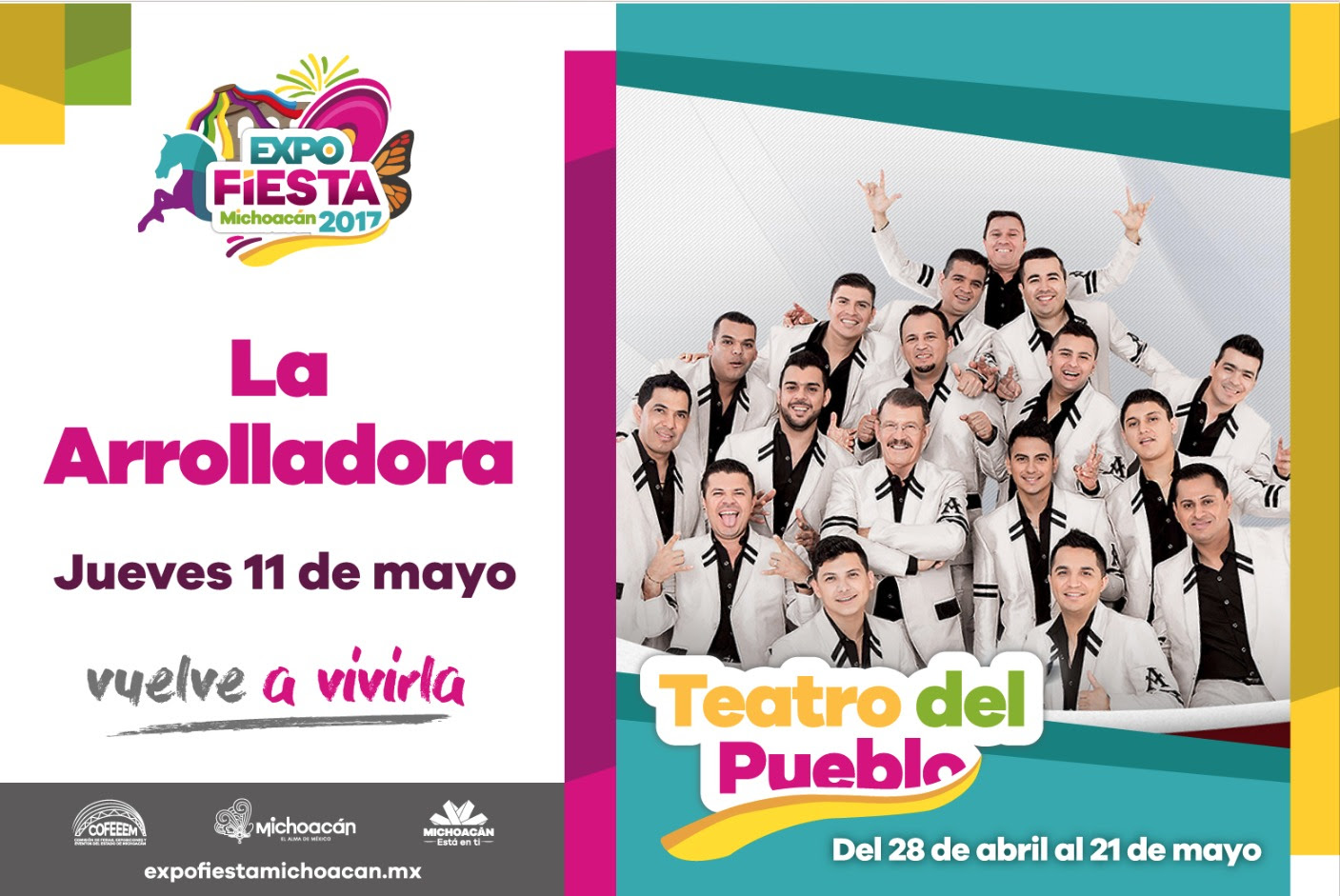 Morelia, Mich., 11 de mayo de 2017.- Este jueves a las 21:00 horas en el Teatro del Pueblo de la Expo Fiesta Michoacán 2017 se presentará La Arrolladora para complacer a miles de seguidores michoacanos que cantarán y bailarán al ritmo de los mejores éxito de esta banda sinaloense, como «Cabecita dura» y “El final de nuestra historia».