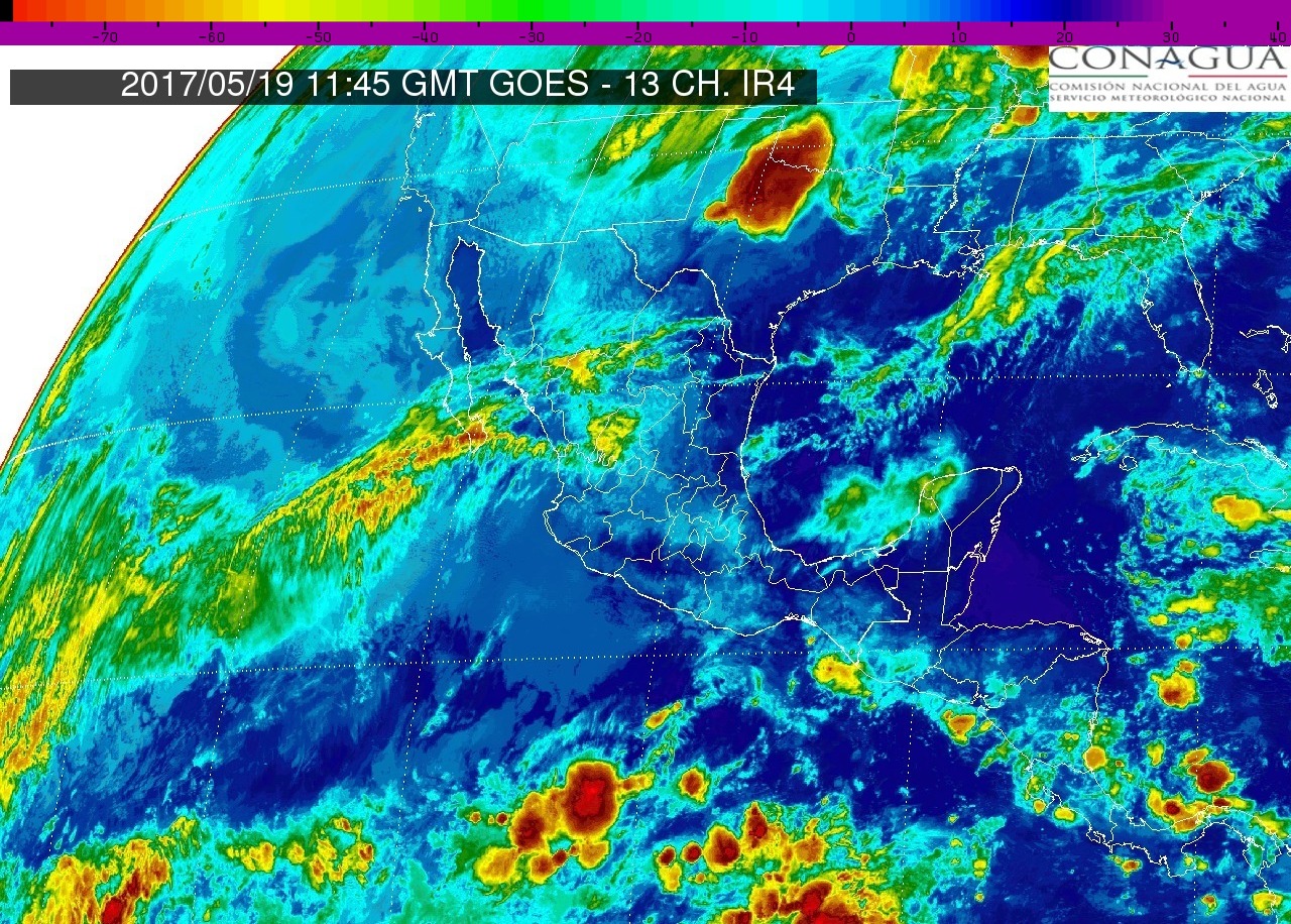 CDMX, 19 de mayo del 2017.- Para hoy viernes, se prevén tormentas puntuales fuertes con granizadas sobre Coahuila, Nuevo León y Tamaulipas, además de condiciones para la formación de torbellinos o tornados en el norte de esas tres entidades. Potencial de tormentas puntuales fuertes con granizadas en Chiapas, Tlaxcala y Puebla; así como lluvias con intervalos de chubascos en San Luis Potosí, Hidalgo, Estado de México, Guerrero, Oaxaca y Veracruz, además de lluvias dispersas en el centro y occidente del territorio nacional. Condiciones origianadas por un frente frío sobre la frontera norte de México, canal de baja presión sobre el interior del país y una circulación anticiclónica sobre el centro y sur del territorio, lo cual origina ambiente muy caluroso y efecto de surada con rachas superiores a 60 km/h sobre Nuevo León, Tamaulipas y el litoral del Golfo de México.