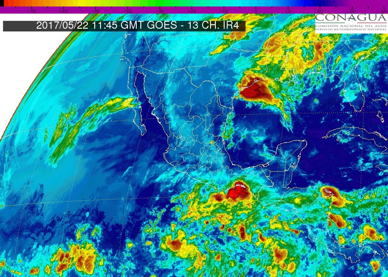 CDMX, 22 de mayo del 2017.- Para hoy lunes, se prevén intervalos de chubascos con tormentas puntuales fuertes en Chiapas y Tabasco, mismas que podrán estar acompañadas de actividad eléctrica, caída de granizo y vientos mayores a 60 km/h con posibles tolvaneras o torbellinos en el norte de Coahuila y Nuevo León y noroeste de Tamaulipas; lluvias con intervalos de chubascos en Estado de México, Ciudad de México, Tlaxcala, Puebla, Veracruz, Guerrero y Oaxaca, las cuales podrían estar acompañadas de actividad eléctrica, caída de granizo y rachas de viento mayores a 60 km/h al paso de los sistemas de tormenta, así como rachas de viento de 50 a 60 km/h en San Luis Potosí, Puebla y Veracruz. Asimismo se prevén lluvias dispersas en Michoacán, Hidalgo, Morelos, Campeche y Quintana Roo. Dichos efectos serán favorecidos por el frente No. 48 y un canal de baja presión.