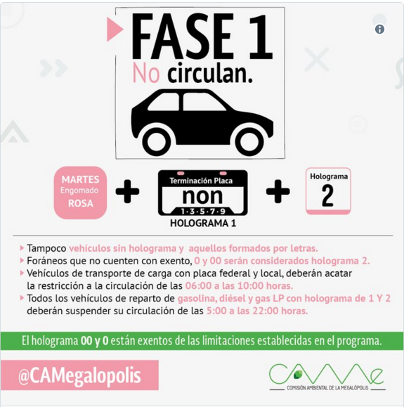 Así como los automóviles que tengan holograma de verificación 1 yplaca con terminación non (1, 3, 5, 7 y 9).