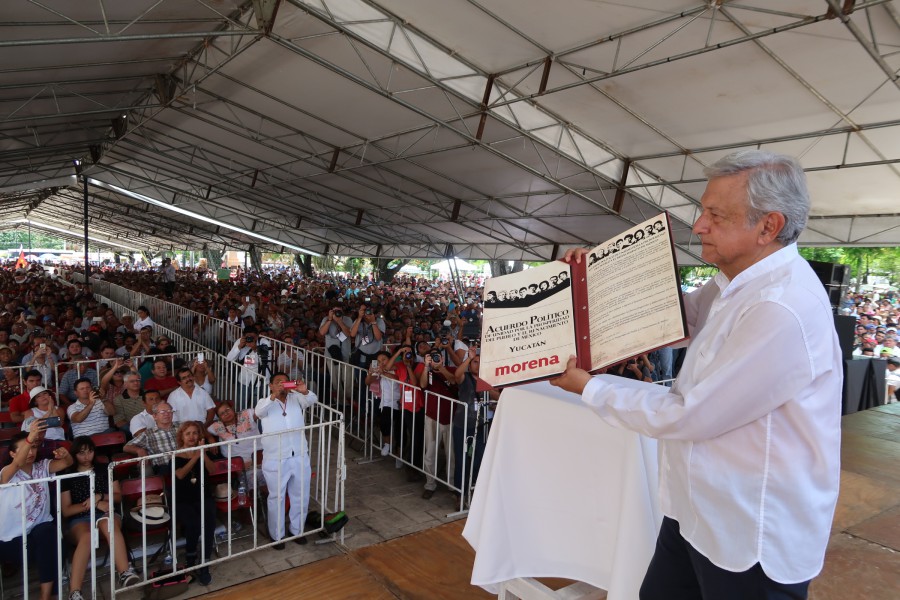 Andrés Manuel López Obrador firmó el Acuerdo Político de Unidad por la Prosperidad del Pueblo y el Renacimiento de México con el pueblo de Yucatán y comentó que le da gusto participar en la firma del acuerdo, porque es muy importante que se promueva la unidad del pueblo, de los ciudadanos, porque se viven tiempos de definición.