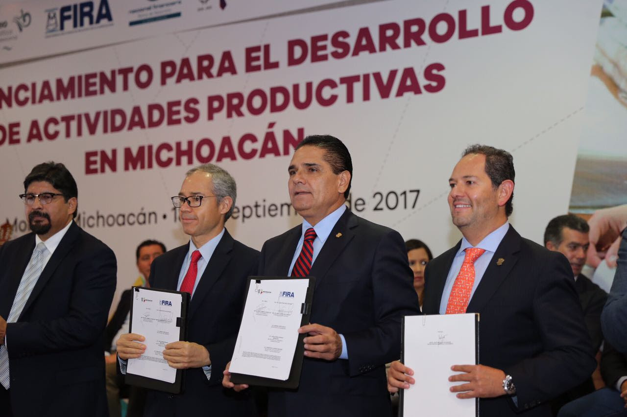 El director general de FIRA, Rafael Gamboa González, manifestó que con este convenio “Michoacán pone el ejemplo al resto de las entidades”, al aprovechar los esquemas que ya se cuentan en la Banca de Desarrollo.