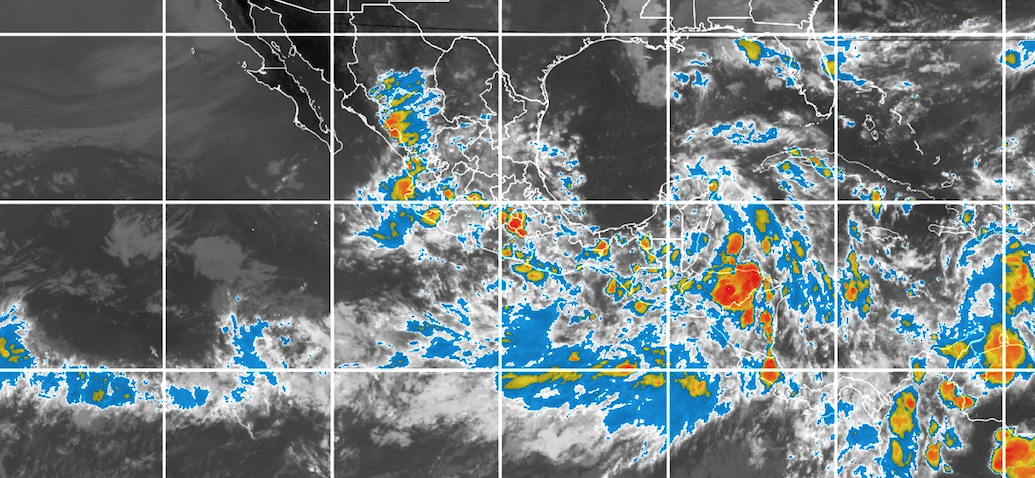 Península de Yucatán: Cielo nublado, 80% de probabilidad de tormentas puntuales intensas en Campeche y muy fuertes en Quintana Roo y Yucatán, acompañadas de actividad eléctrica. Ambiente cálido y viento del este y noreste de 15 a 30 km/h, con rachas de 40 km/h.