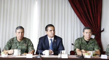 Participaron en esta reunión el secretario de Gobierno, Adrián López Solís; el comandante de la XII Región Militar, general Miguel Ángel Patiño Canchola; el comandante de la 10 Zona Naval, vicealmirante Francisco Pérez Rico; el procurador general de Justicia del estado, José Martín Godoy Castro; el secretario de Seguridad Pública, Juan Bernardo Corona Martínez, y el comandante de la 21 Zona Militar, general José Francisco Morales Cázares.