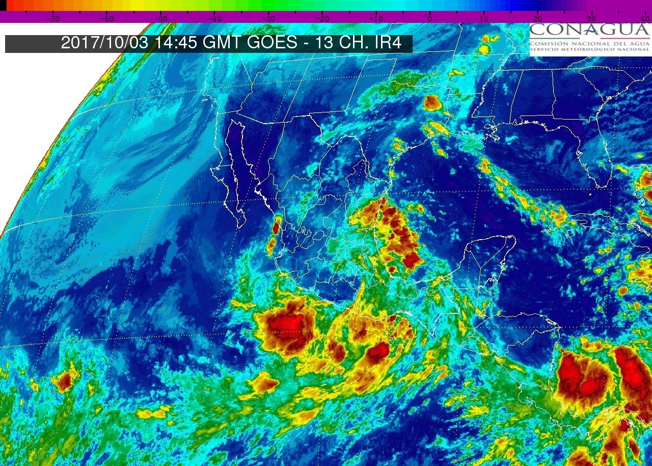 CDMX, 03 de octubre del 2017.- Para hoy martes, se prevén temperaturas calurosas sobre el noroeste, occidente y sureste del Territorio Nacional, con valores de 35 a 40°C, en tanto que el fuerte aporte de humedad del Océano Pacífico sobre el occidente, centro y sur del país y una zona de inestabilidad con potencial ciclónico en el Golfo de Tehuantepec, favorecerán el siguiente potencial de lluvias: