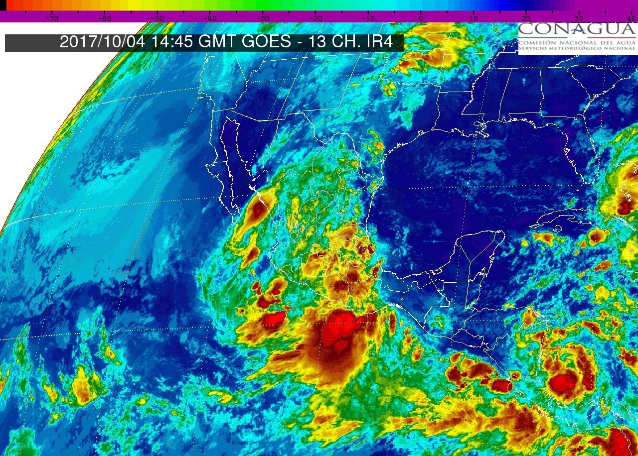 CDMX, 04 de octubre del 2017.- Para hoy miércoles, la tormenta tropical «Ramon» al sur de las costas de Oaxaca, un canal de baja presión en el occidente del Golfo de México, la fuerte entrada de humedad del Océano Pacífico sobre el occidente, centro y sur del país, y la cercanía de una onda tropical a la Península de Yucatán, favorecerán el siguiente potencial de lluvias: