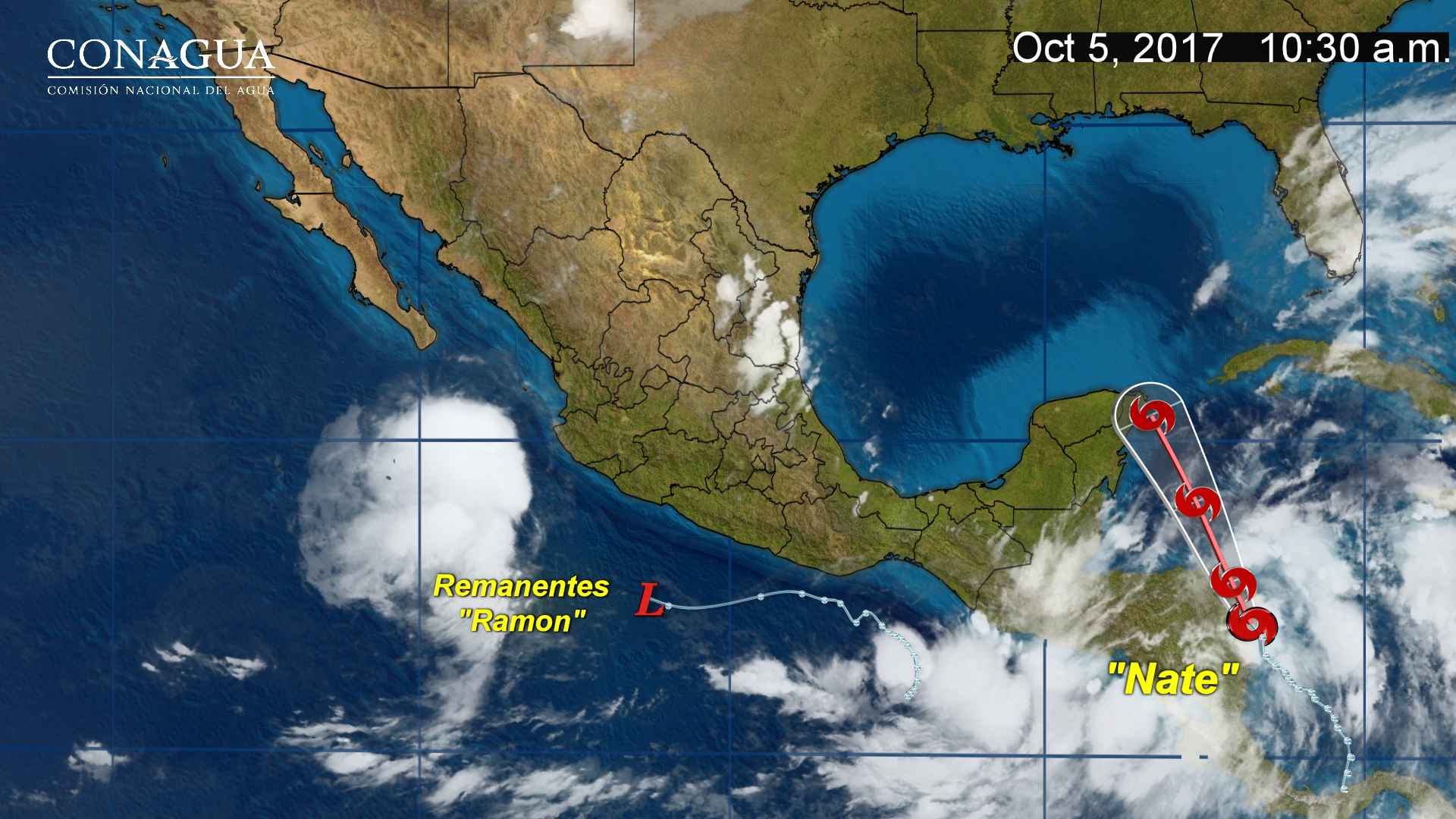 Por su parte, los remanentes de la depresión tropical «Ramon» al sur de las costas de Guerrero, un canal de baja presión en el occidente del Territorio Nacional y la fuerte entrada de humedad del Océano Pacífico sobre el occidente, centro y sur del país, favorecerán el siguiente potencial de lluvias: