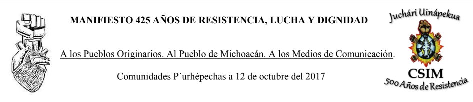 A los Pueblos Originarios. Al Pueblo de Michoacán. A los Medios de Comunicación.