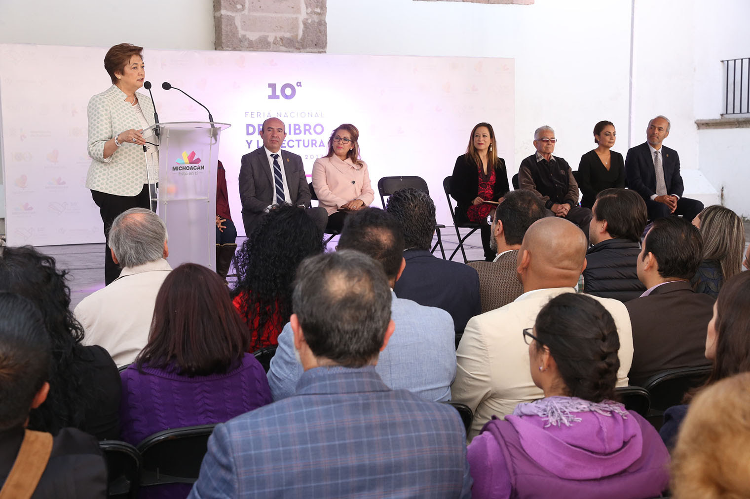 Acompañada de la coordinadora general de Comunicación Social, Julieta López Bautista; del secretario de Educación en el Estado, Alberto Frutis Solís; y de la directora de Difusión Cultural y Extensión de la Universidad Michoacana de San Nicolás de Hidalgo (UMSNH), Lorena Gaona Farías, la encargada de la política cultural en el estado destacó la importancia de dedicar esta edición a la UMSNH, que este año cumple su primer centenario y que es uno de los pilares fundamentales de Michoacán.