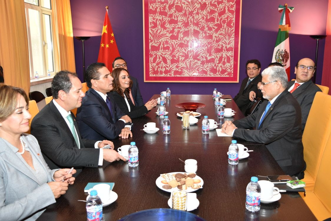 Beijing, China, 13 de noviembre de 2017.- El Gobernador Constitucional de Michoacán, Silvano Aureoles Conejo, inició este lunes una intensa gira de trabajo en la República Popular China, donde sostuvo un encuentro cordial y respetuoso con el embajador de México en este país asiático, José Luis Bernal Rodríguez.