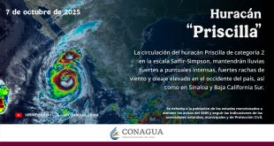 CDMX, 07 de octubre del 2025.- Este día martes, el huracán Priscilla se desplazará lentamente al sur …