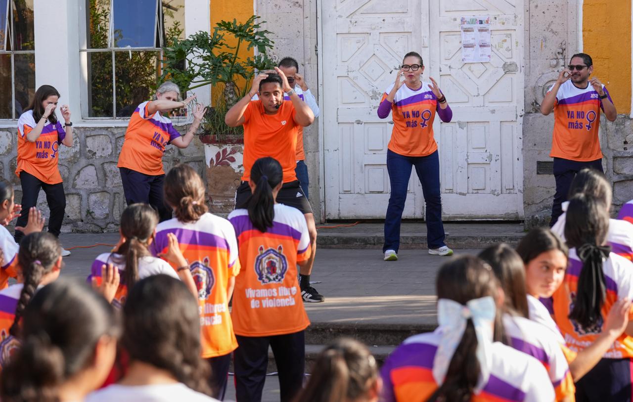 En el conocido internado “La Huerta”, además de la clase muestra impartida por el maestro Gabriel Calderón, expertas y expertos en derechos humanos e igualdad de género pronunciaron mensajes a las más de 350 alumnas que se congregaron en la explanada, con una entusiasta participación, que dejó sembrada la idea de que la violencia hacia las mujeres no sólo debe ser denunciada, sino combatida.
