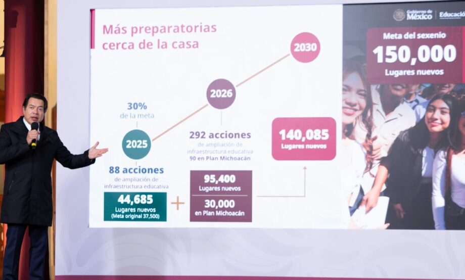 “Hay un plan muy ambicioso para el 2026, van a ser 292 acciones, que en total serán 95 mil 400 nuevos lugares para llegar a un acumulado de 140 mil 85 lugares, y nuestra meta en la administración (2030) será de 150 mil lugares nuevos”, puntualizó el secretario de Educación.