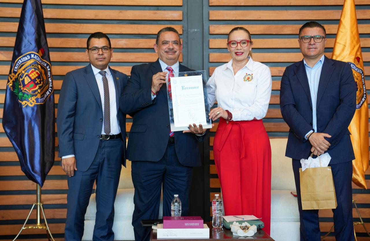 “Ojalá que nuestras y nuestros estudiantes tengan las puertas abiertas para su servicio social, sus prácticas profesionales y por supuesto para el mercado laboral porque aquí en la Universidad Michoacana el humanismo no solamente se lleva en un eslogan sino también se ejemplifica con las buenas acciones del buen ciudadano”.