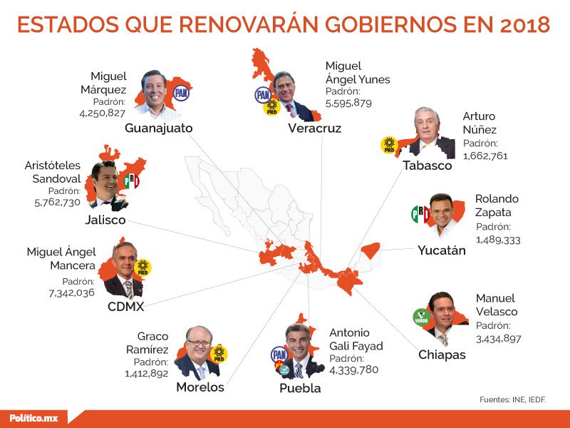Leer más »MORENA 5 gubernaturas, PAN 2 y MC 1, probables ganadores en las entidades en 2018; el PRI ni una