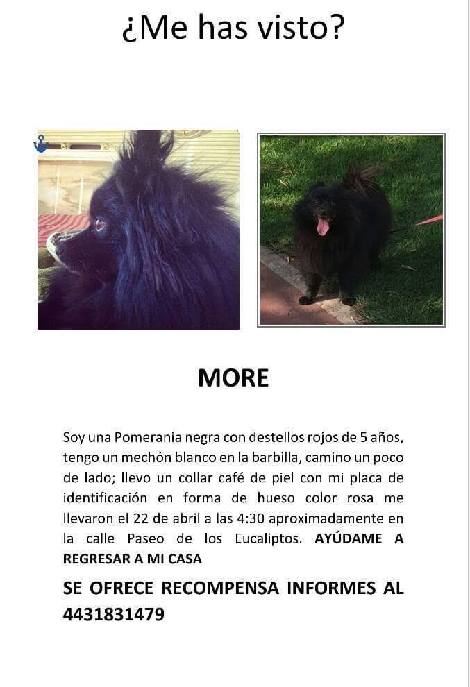Leer más »Recompensa a quien entregue a la perrita «More» (Raza Pomerania)