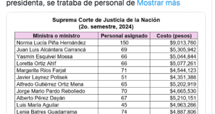 30 de septiembre del 2025.- Las y los 11 ministros de la anterior Suprema Corte de Justicia de la Nación (SCJN) significaban un gasto de 58.2 millones de pesos por los asesores que tenían a su cargo, informó la ministra Lenia Batres Guadarrama. La que más tenía ese tipo de …